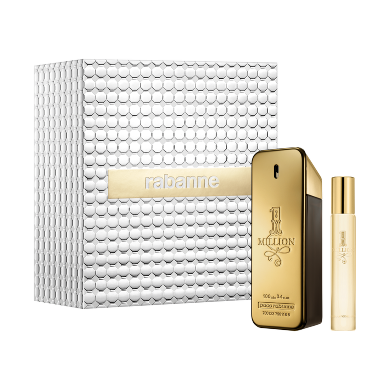 Inspired by fashion, styled like metal. Travel without limits with a Rabanne fragrance forever by your side. Discover 1 Million Eau de Toilette 100ml and its Travel Spray 20ml. 1 Million Eau de Toilette is a fresh and spicy fragrance for men with notes of amber, leather, and tangerine.