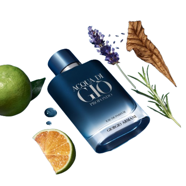 Acqua di Giò profondo eau de parfum boasts a deep, aquatic marine intensity. The scent opens with marine and green mandarin notes, while its heart combines lavandin and rosemary, creating an aromatic and masculine effect. At the base are cedarwood and patchouli, for an enveloping sensation. ACQUA DI GIÒ PROFONDO EAU DE PARFUM is now designed with an elegant blue gradient lacquering, echoing the sea depths it captures, and a deep blue hue for its cap, embossed with the Giorgio Armani monogram. The Giorgio Armani name is now positioned at the bottle’s base. As part of Giorgio Armani’s commitment to a better future, ACQUA DI GIÒ PROFONDO EAU DE PARFUM is now refillable: each format of ACQUA DI GIÒ PROFONDO EAU DE PARFUM is designed to be unscrewed and refilled at home with the 150ml refill bottle sold separately.