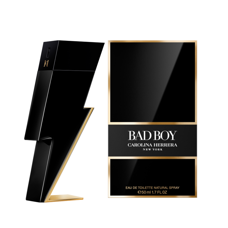 Bad Boy, the new masculine fragrance by Carolina Herrera, is a powerful and sophisticated scent for unique and irreverent men who dare to embrace all of the facets of contemporary manhood. The obscurity of Tonka Bean, Cacao and Ambar Wood contrasts with the luminosity of Sage, Black and White Pepper and Bergamot. The seductive aroma of Bad Boy is collected in an extremely distinctive flacon. Shaped as a lightning symbol of heroism and strength in several cultures, this unique piece becomes a true object of desire.