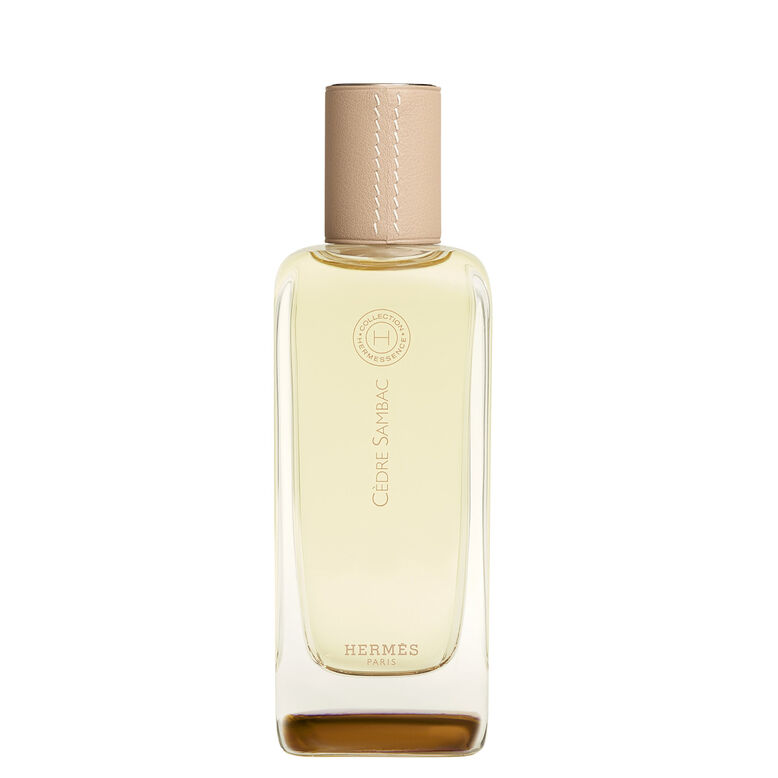 Creation The hermessence cèdre sambac returns to where the story of perfumery began, through an exploration of lebanese cedar. Upon this strong and graceful age-old tree, I wanted to grow an embracing jasmine that coils around it. Christine Nagel, Hermès perfumer. Olfactory notes Both raw and radiant, cèdre sambac unfurls the strength of cedar surrounded by a sensual sambac jasmine. An hermessence suitable for both men and women. The object The cèdre sambac bottle is showcased by a vibrant trench-coat beige lacquer on the glass, echoed by the leather cap. Ethics The 100 ml size can be replenished from the 200 ml refill. A responsible gesture, integral to an object created to last. The Hermès detail The house’s emblematic lantern bottle constitutes a unique and timeless signature. Its leather cap with saddle-stitch signature is topped with an engraved Hermès saddle nail.Upon this age-old tree, strong and graceful, I wanted to grow an embracing jasmine that coils around it.Christine Nagel