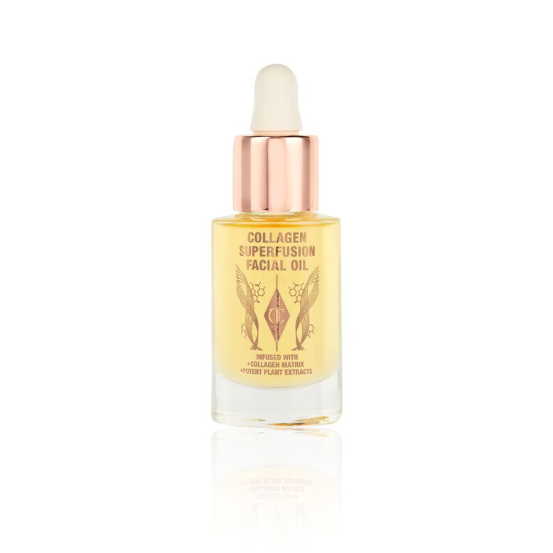 Charlotte’s Collagen Superfusion Facial Oil has been designed with expert skin scientists and breakthrough ingredients to be non-greasy and non-comedogenic, whilst addressing universal skin concerns, like dryness, and delivering OUR BEST EVER CLINICAL RESULTS FOR GLOWING SKIN. Combining potent plump-effect collagen with powerhouse plant extracts and soothing essential oils, this miracle elixir is like a rehab for the skin! It soothes, smooths, hydrates and plumps the look of skin, whilst helping to calm and soothe the senses with the transformative power of scent.With her 28 years of experience, Charlotte Tilbury has conducted a study in beautiful skin spanning all skin types, all ages and all skin tones. She’ is known globally as ‘The Queen of Glow’renowned for giving everyone, everywhere their best, most beautiful, lit-from-within skin.Charlotte’s Collagen Superfusion Facial Oil is the perfect, moisture-sealing elixir, to layer on top of your serums and creams. The formula works alongside the skin’s natural oils to help balance the look of the complexion, lock in moisture by strengthening the barrier on the skin and help support the feel of soft and supple skin.