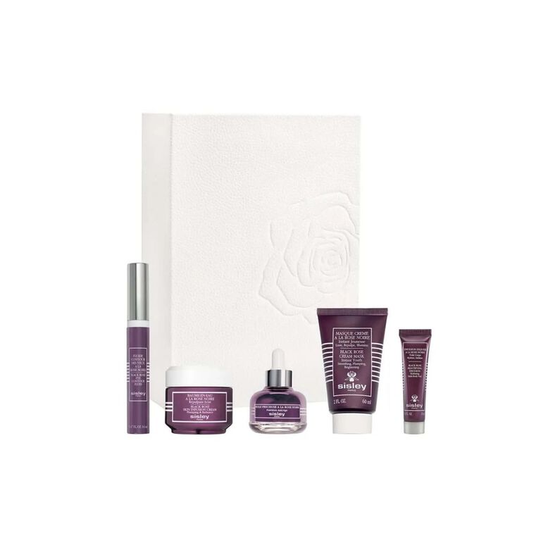 This kit contains a full size of the Black Rose Cream Mask, a plumping and revitalizing Instant Youth mask specially formulated to rejuvenate the skin and restore its look of vitality. It softens signs of tiredness and aging. The complexion recovers a more luminous look. It also includes the Black Rose Skin Infusion Cream, a plumping moisturizing skin care formula that restores skin’s look of vitality and freshness, revealing the radiance of younger skin. The Black Rose Precious Face Oil is a silky, smooth dry oil to prepare, nourish and visibly smooth the look of wrinkles and fine lines while it revitalizes the skin for a radiant complexion. The Black Rose Eye Contour Fluid is a refreshing eye fluid with exceptional revitalizing performance, the eyes seem to be smoothed, opened up and illuminated in a single stroke. Lastly, the Black Rose Beautifying Emulsion, an ultra-hydrating and beautifying emulsion for the body that enhances skin’s natural radiance and suppleness to evoke the look of youthfulness. Set Includes: Black Rose Cream Mask, 60ml. Black Rose Skin Infusion Cream, 50ml. Black Rose Precious Face Oil, 25ml. Black Rose Eye Contour Fluid, 14ml. Black Rose Beautifying Emulsion, 15ml.