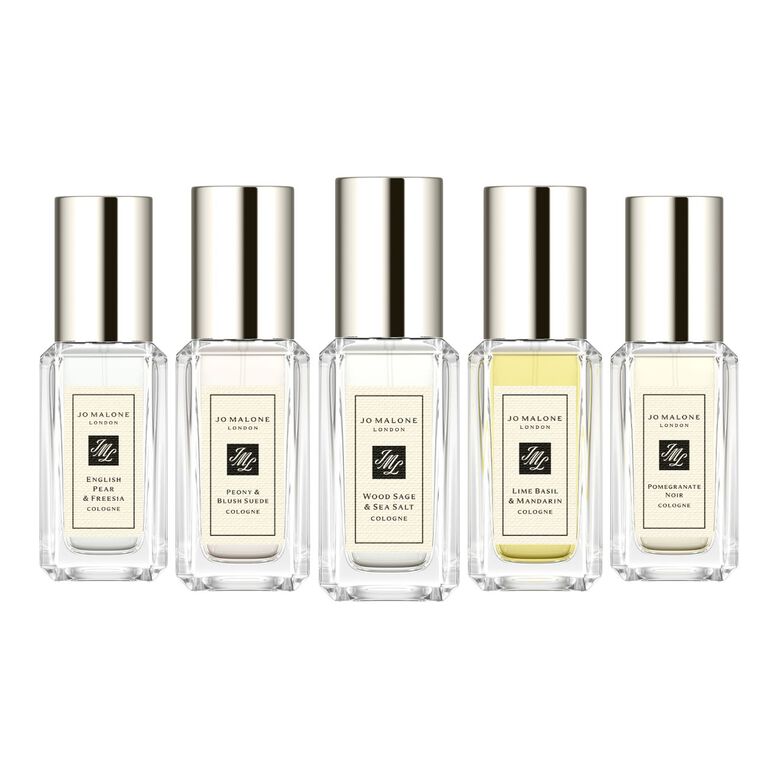 A collection of five travel-sized Jo Malone London fragrances (9ml), designed to wear solo or pair together. Wrapped in a gift box to surprise someone special or keep for yourself.This gift collection contains: English Pear & Freesia Cologne 9ml Peony & Blush Suede Cologne 9ml Wood Sage & Sea Salt Cologne 9ml Lime Basil & Mandarin Cologne 9ml Pomegranate Noir Cologne 9ml