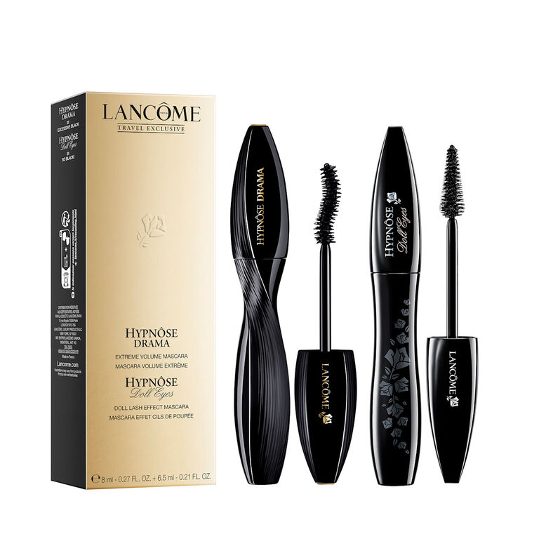 Duo travel exclusive mascara set, comprising Hypnôse Drama and Hypnôse Doll Eyes. Hypnôse Drama: Let your eyelashes take centre stage with Lancôme’s full volume mascara, Hypnôse Drama. Volume in a single step. Our curvaceous super-sized brush for full lash contact creates high volume and thicker looking lashes. With every stroke our glossy mascara builds a stunning gaze, for beautiful, full body lashes. Hypnôse Doll Eyes: watch lashes turn into a doll-eyed look with Lancôme’s Hypnôse Doll Eyes. A must-have mascara to create beautiful lashes that look extended and lifted, Hypnôse Doll Eyes evenly coats lashes without weighing them down. Sweep on using our cone shaped brush and watch your eyes transform into a dazzling wide-eyed look.
