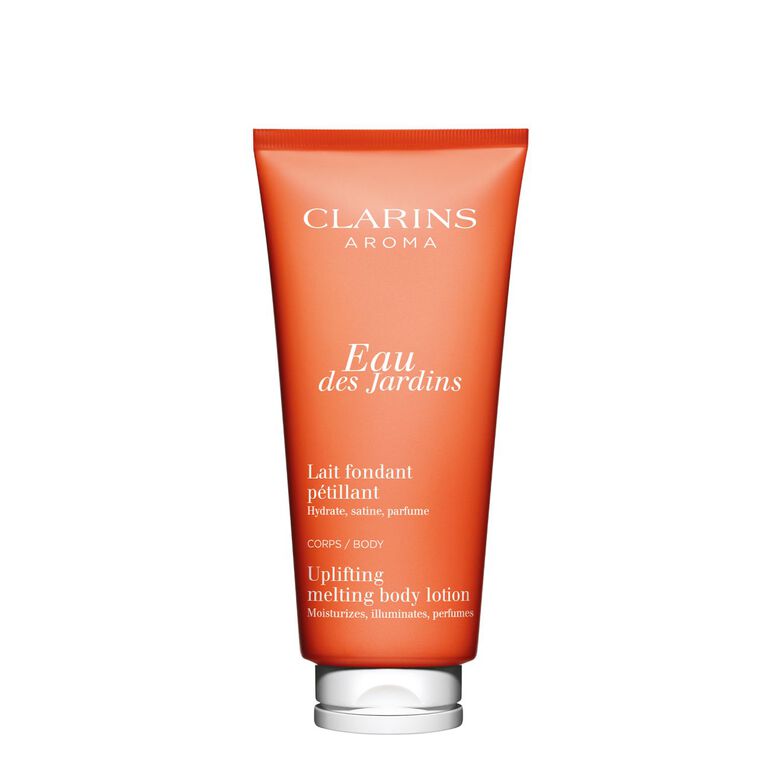 Clarins Eau des Jardins comes in a moisturising body lotion. Radiate joy with this delectably scented formula that combines the uplifting fragrance of Eau des Jardins essential oils with organic leaf of life extract and hazelnut oil to provide intense, nourishing hydration, leaving the skin silky smooth. Skin is left soft and soothed, 94% natural ingredients.