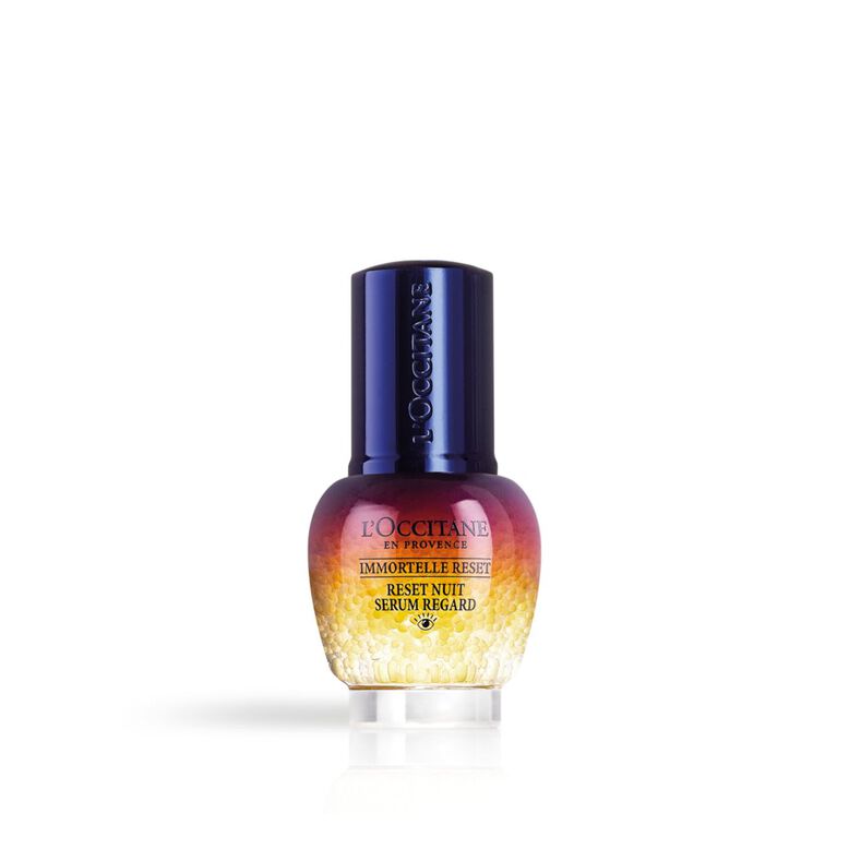 Immortelle Overnight Reset Eye Serum works to reduce all the visible signs of fatigue, so your eyes look fresh and rested every morning. It works to reduce the appearance of puffiness and dark circles and helps to smooth fine lines and wrinkles.This extraordinary serum suits all skin types, and works in combination with all L’OCCITANE eye balms.Our busy modern lives are full of stress, pollution, and often exhaustion, and all these elements have a direct impact on your skin. Your skin is best able to perform its repairing and regenerating functions at night, which makes your night-time skin routine so important.