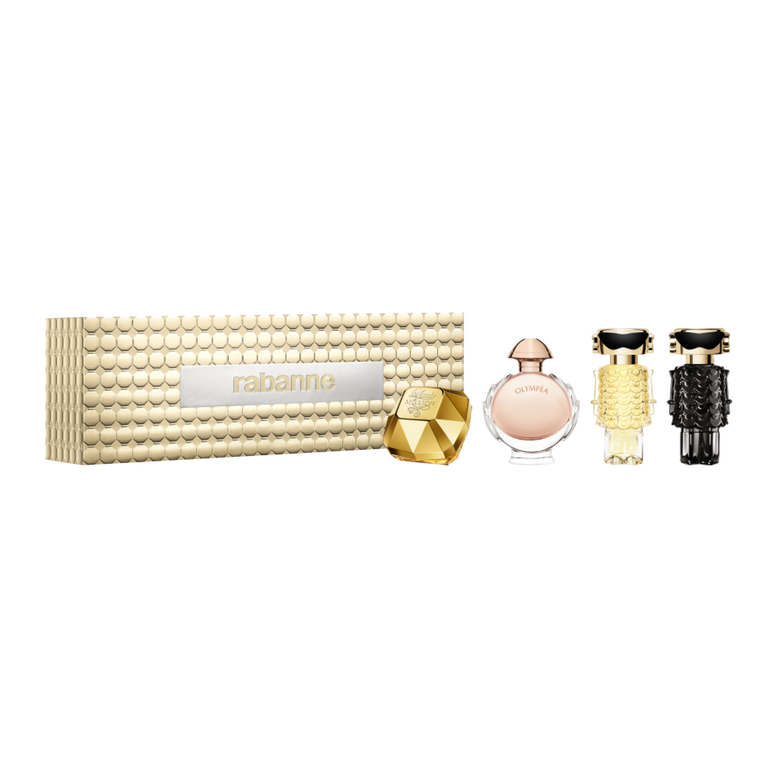Inspired by fashion, styled like metal. Take a bold journey through Rabanne fragrances with this exclusive miniature set. Enjoy a miniature of Fame, Fame Parfum, Lady Million and Olympea. Seductive, iconic or fascinating… what will be your ultimate fantasy