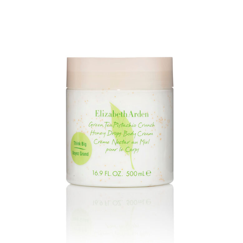 Experience a sensory journey like no other with Elizabeth Arden’s New Green Tea Pistachio Crunch Honey Drops Body Cream. Immerse yourself in a savory gourmand blend, uplifted by sparkling citrus and soft florals wrapped in rich, warm sweetness. This indulgent cream, infused with a delicious blend of pistachio, green tea and real drops of honey, is a delightful treat for your skin. It pampers, enriches and deeply hydrates dull, dry skin, leaving you feeling refreshed and rejuvenated.