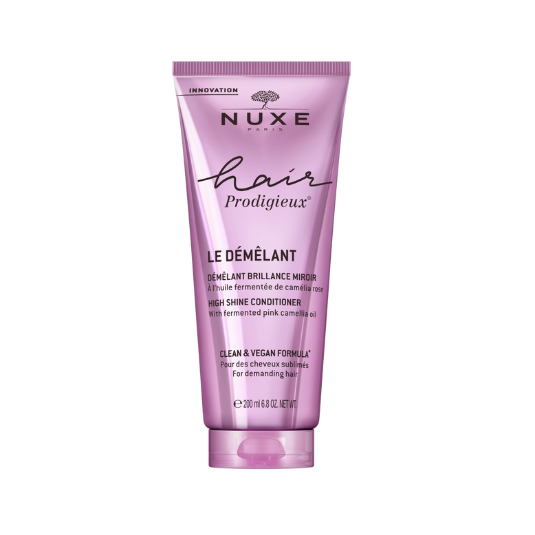 Transform your hair with the enhancing properties of fermented pink Camellia oil! Building on Laboratoire Nuxe’s expertise in botanical oils, the High Shine Conditioner instantly detangles and delicately perfumes hair. Formulated without silicone, this conditioner, with fermented pink Camellia oil, intensely nourishes the hair fiber. Its balm texture with the iconic fragrance of Huile Prodigieuse envelops the hair for atruly sensorial ritual. The hair is shiny with an addictive silky feel.After the 1st application (1): Hair is easy to detangle for 90% of users. Hair is moisturized for 90% of users Hair feels silky for 90% of users. Hair feels soft for 90% of users.After 12 applications (2): For enhanced shine: 40% shine (2)(1) Usage test – 22 women – satisfaction % immediately after application.(2) Instrumental test on hair strand – improvement % after 12 applications. 95% ingredients of natural origin.Skincare formulated and produced in France.