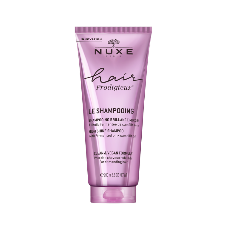 Transform your hair with the enhancing properties of fermented pink Camellia oil! Building on Laboratoire Nuxe’s expertise in botanical oils, the High Shine Shampoo washes and delicately perfumes hair. Formulated without silicone or sulphate*, this shampoo, with fermented pink camellia oil, nourishes without weighing down the hair fiber. Its milky texture with the iconic fragrance of Huile Prodigieuse envelops the hair for a truly sensorial ritual. The hair is shiny with an addictive silky feel.After the 1st application (1): Hair is gently cleansed for 95% of users. Hair is soft for 91% of users. Hair does not feel heavy for 95% of users. Hair is subtly scented for 95% of users. (1) Usage test – 22 women – satisfaction % immediately after application.*Sulphate surfactant.94% ingredients of natural origin.Skincare formulated and produced in France.