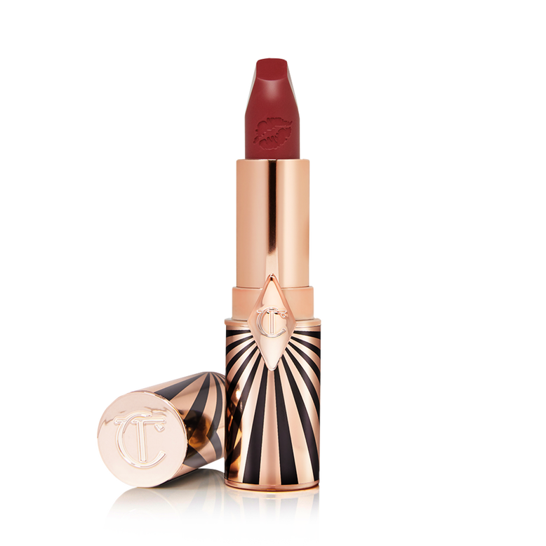 Lipstick is happiness in a tube! – Charlotte TilburyCharlotte’s Hot Lips 2 in Viva La Vergara is flattering, soft wine matte lipstick in homage to Sofia Vergara. This is the perfect, wearable, nuanced colour!Hot Lips 2 was created in collaboration with 11 incredible icons rule breakers, record makers and history shakers! Charlotte has created 5 collectible, REFILLABLE and interchangeable designs inspired by her universe of fashion, Hollywood, Rock ‘n’ Roll and magic! Mix and match your favourite design with any Hot Lips 2 refillable shade exclusively on CharlotteTilbury.com and Charlotte’s standalone stores.If you like Matte Revolution in Walk of No Shame, you’ll LOVE Hot Lips 2 in Viva la Vergara!