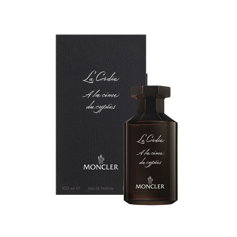 Moncler fragrance La Cordée explores the elegant verticals and keynotes of cypress wood which mingle together with addictive and sensual black tea leaves.