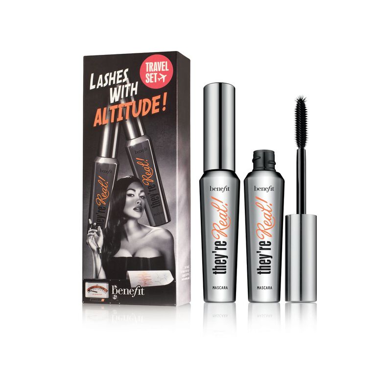 They’re real! lengthens, curls, volumizes, lifts and separates. Our jet black, long-wearing formula won’t smudge or dry out. A specially designed brush reveals lashes you never knew you had!Set includes:They’re Real! Mascara x, full-size x2