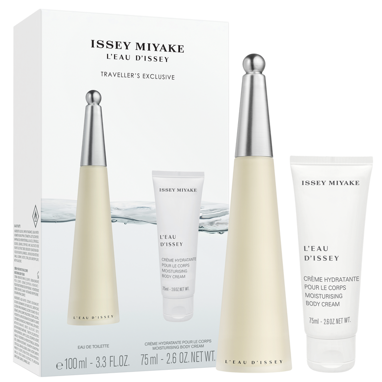 Travel fragrance set L’Eau d’Issey Eau de Toilette for women by Issey Miyake For a delicately scented ritual on any occasion, Issey Miyake Parfums presents an exclusive giftset including a bottle of its iconic L’Eau d’Issey Eau de Toilette 100ml coupled with the 75ml body cream. An aquatic floral fragrance for women Discover an opulent bouquet of a white flowers accord, blend of lily and lotus, that meets the freshness of water and textured precious woods. A floral fragrance interpreting the scent of water on a woman’s skin. A 100% cardboard giftset, more consciously-crafted Issey Miyake Parfums commits to a more responsible journey through plastic-free gift boxes, 100% made of FSC cardboard composed of material from FSC certified forests and other controlled sources.