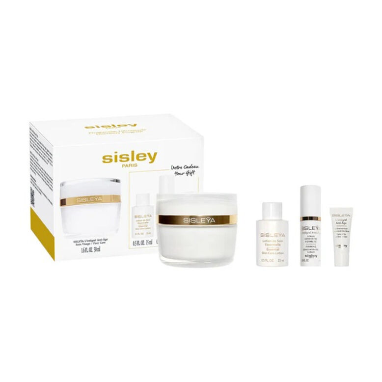 Contains full sizes of: Sisleÿa L’Integral Anti-Age, the truly complete anti-aging product that takes into account genetic and environmental aging, and now behavioral aging. It acts on the look of wrinkles, firmness, density, radiance and hydration. Morning and Evening. Plus deluxe travel size gifts of: Sisleÿa Essential Skin Care Lotion, the new generation preparation lotion that primes the skin for a more moisturized, plumped up skin, and a luminous looking complexion that is more receptive to subsequent skincare. Sisleÿa L’Integral Anti-Age Firming Concentrated Serum, a powerful anti-aging serum with intensive firming action to help visibly restore the look of density and shape of more youthful skin. Sisleÿa L’Integral Anti-Age Eye and Lip Contour Cream, a powerful skin care product with an anti-wrinkle firming action. It fights against the look of puffiness and dark circles for eyes that appear redefined, wider, brighter and visibly more youthful. The lips appear reshaped and more defined.
