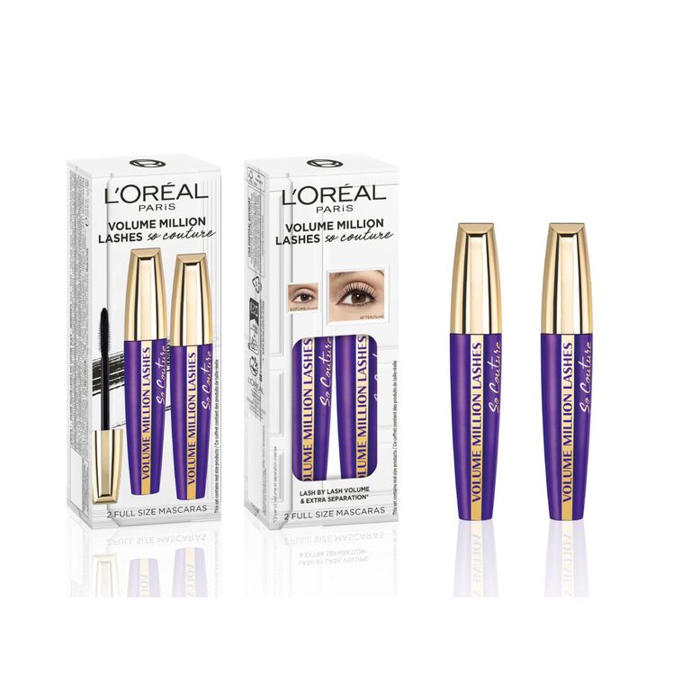 Dress your lashes in a liquid black silk for lash by lash definition with the L’Oréal Paris Volume Million Lashes So Couture Mascara, now available in a duo set. The couture brush has been tailored by experts to coat every lash without clumps. Its extra soft & small bristles gently thicken the look of each lash while its rigid wand enable you to spread the formula evenly from root to tip. The liquid black silk formula gently envelops each lash with volume and intensity, leaving lashes soft… say goodbye to stiff lashes!