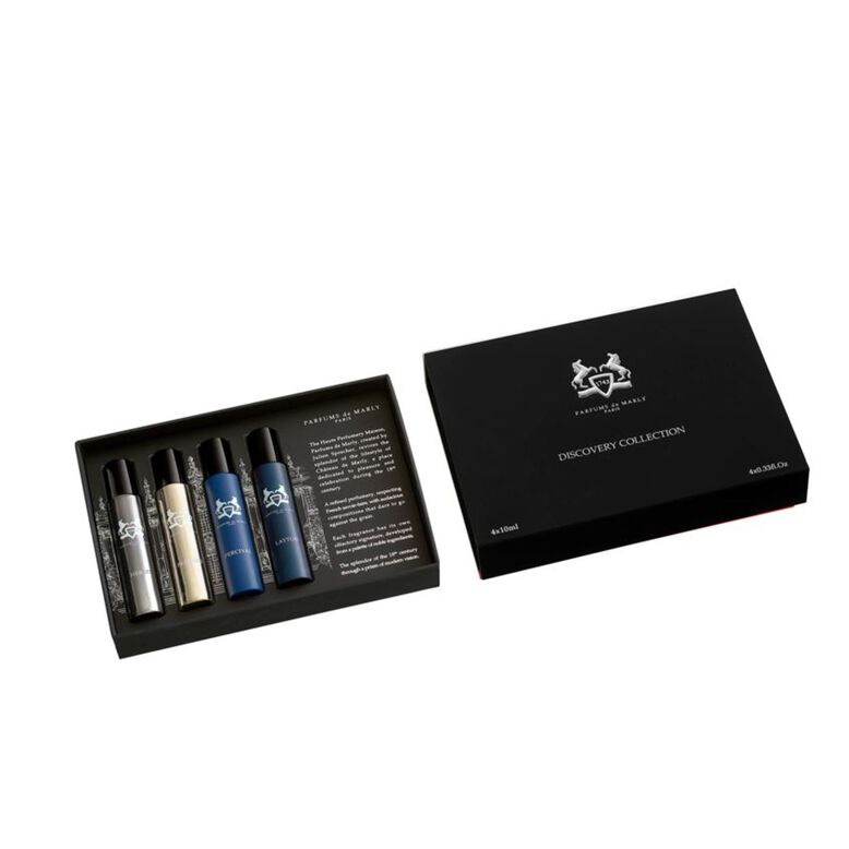 This masculine Discovery Collection by Parfums de Marly is a curation of vibrant and creative scent compositions with some of the most beautiful and rare essences. The selection includes four of Parfums de Marly’s best sellers, each of which is featured in a 10ml vial. The collection is perfect not only for the discovery of the scents but for travel and gifting. The masculine fragrances include Layton, Pegasus, Herod and Percival.