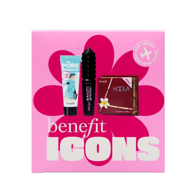 You know them, you love them, and you can’t get enough of them. It’s everyone’s fave Benefit trio…in mini, on-the-go sizes. Smooth things over with our #1 face primer The POREfessional to minimize the look of pores and fine lines, bat your BANGin’ lashes with our bestselling volumizing mascara BADgal BANG!, and get a natural-looking, matte bronze with award-winning Hoola. Now that’s iconic.