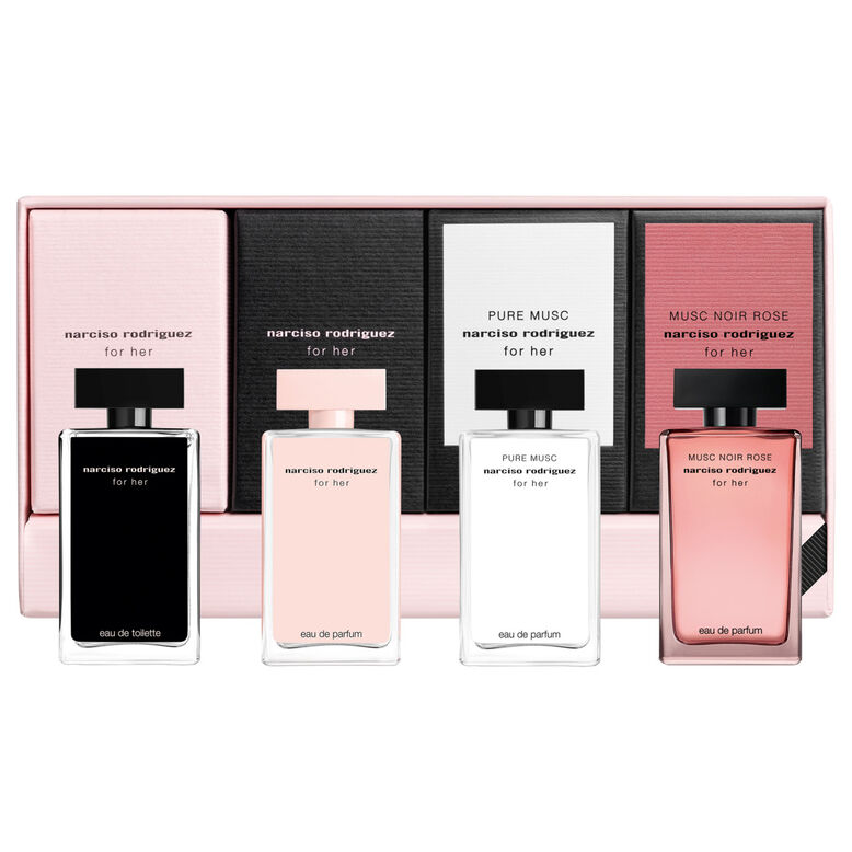 Born of simplicity and essentiality guided by femininity and elegance. The for her line is Narciso Rodriguez’s gift to women and an homage to their inner beauty. The patented heart of musc infused in every for her perfume takes its wearer on a sensorial journey. With this exquisite set, you’ll be gifting the following: – 7,5ML for her Eau de Parfum – 7,5ML for her Eau de Toilette – 7,5ML for her Eau de Parfum Pure Musc – 7,5ML for her Eau de Parfum Musc Noir Rose