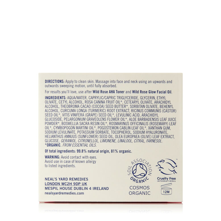 Instantly hydrate and revitalise your skin with our certified organic and clinically proven day cream. This lightweight moisturiser with organic wild rosehip seed oil visibly enhances radiance day after day. Enriched with hyaluronic acid to lock in moistu