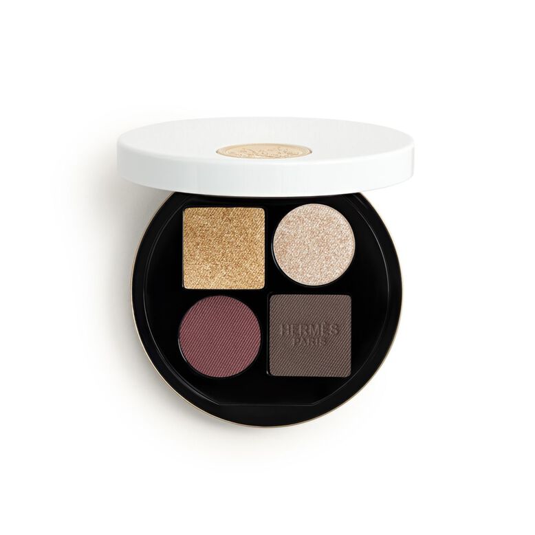 THE CREATIONSix color palettes offer multiple possibilities of expression for a natural, intense, and sophisticated look. Each quartet is composed of a graduated trio of powders enlivened by a fourth, stronger and more surprising color. All can be used alone or combined to create a subtle harmony or blend of shadows.THE OBJECTDesigned by Pierre Hardy, this quartet of eyeshadows plays with geometric shapes and echoes the Bauhaus movement. Its round case is protected by a canvas drawstring pouch and accompanied by an applicator brush in lacquered wood. The object is presented in an orange box.THE COLORImagined by Gregoris Pyrpylis, creative director of Hermès Beauty, each harmony is inspired by nature and bears a name evocative of its color universe.Ombres Mordorées, a golden, light-filled horizon with hints of bronze, like the glowing embers of autumn.THE PRODUCTThe quartets of eyeshadows are composed of up to 98% ingredients of natural origin. They contain silky emollients and oils for easy application and a long-lasting, second-skin effect. The soft and light texture of the eyeshadows is easily blended with the finger or a brush for customized intensity. In each palette, the different finishes are inspired by the silk métier. The matte finish evokes silk chiffon, the satin finish suggests silk twill, and the shimmering finish is reminiscent of silk lamé.ETHICSThe color palette case is refilled by simply removing and replacing the powder pan. Refills are sold separately in the form of quartets.