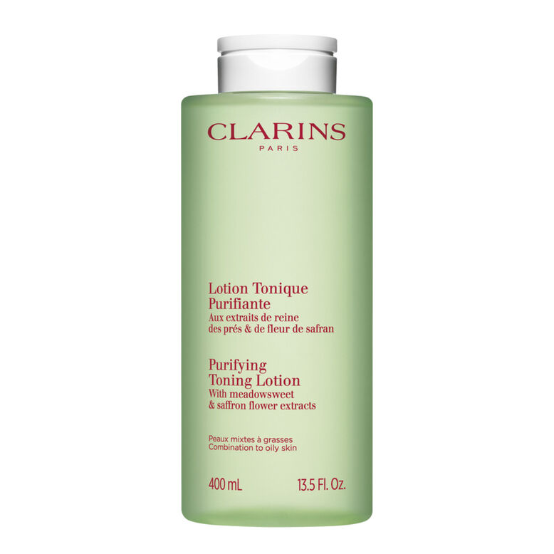 The perfect toning lotion for removing make-up from combination to oily skin. Rich in active ingredients chosen specifically to balance out combination to oily skin types, it is composed of meadowsweet extract to help limit excess sebum as well as witch hazel extract for its astringent properties. This formula is also rich in the Clarins Microbiota Complex, which combines polyphenols from saffron flowers and marine-based prebiome to help preserve the balance of skin microbiota. To reduce its environmental footprint, Clarins has redesigned this product in an even more eco-friendly bottle with a lighter capsule. And, for the first time, it is refillable thanks to its new eco-refill.
