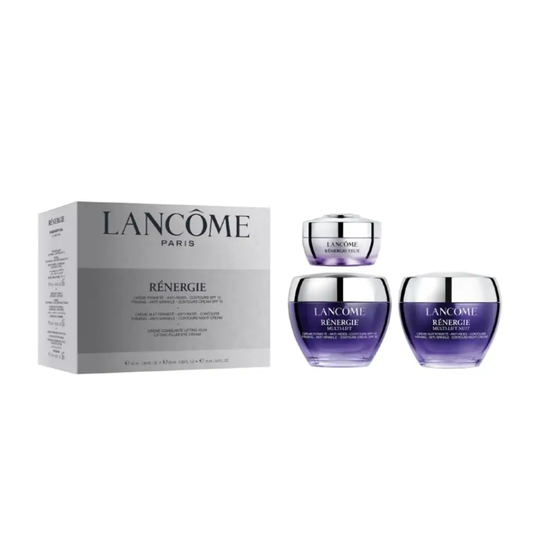 The perfect skincare routine set of Renergie. Discover Renergie Multi-Lift Crème to redefine facial contours, revitalize skin, Rénergie Multi-Lift Night to tighten all facial zones and Renergie Multi-Lift Eye to lift eyelids, firm skin and reduce wrinkles. Rénergie Multi-Lift Set cont.: Rénergie Multi-Lift Day Cream 50 ml Rénergie Multi-Lift Night Cream 50 ml Rénergie Multi-Lift Eye Cream 15 ml Powder 4 g (Travel Retail Exclusive).