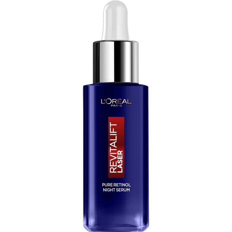 L’Oréal Paris Revitalift Laser Renew Pure Retinol Night Serum, international patent pending. A powerful solution to visibly reduce the appearance of even deep wrinkles. L’Oréal’s highest concentration of pure Retinol. So effective, 77% of women saw a reduction in the appearance of deep wrinkles*. Contains a naturally sourced trio of caring ingredients for maximum efficacy with exceptional comfort. Powerful results validated by a dermatologists. Consumer Benefits: Visibly reduce the appearance of deep wrinkles. Contains pure retinol (vitamin A). Enriched with a naturally sourced trio of caring ingredients, including macro Hyaluronic Acid to care for your skin. L’Oréal are removing the cellophane wrapper from the packaging of all L’Oréal Paris skincare products as part of efforts to reduce the use of plastic without compromising the quality of L’Oréal packaging. DIRECTIONS: Apply 3-4 drops to clean, dry skin in the evening before moisturiser. Always use a minimum of SPF 20 the morning after. Revitalift Laser Renew SPF 20.