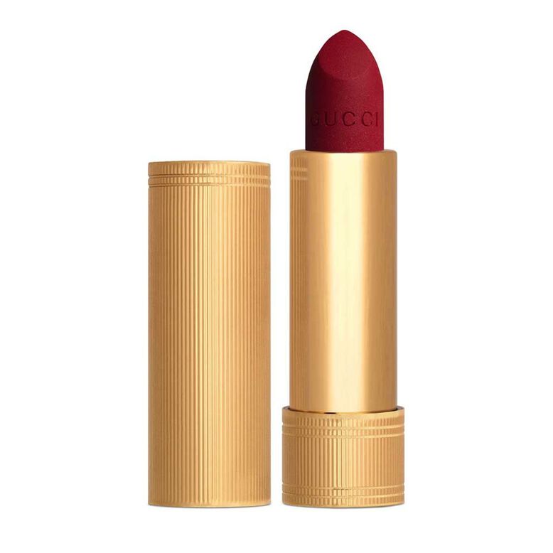 Rouge à Lèvres Mat is a collection of intense beautiful colours with a long-lasting matte finish. Specially formulated with rich pigments and gelling waxes, this lipstick delivers rich colour with a soft creamy feel. Formula and application: Rouge à Lèvres Mat Gucci lipstick delivers bright and rich lip colour with a soft and velvety feel. It has a silk-like texture enriched with oils and gelling waxes for a comfortable finish without drying out lips or colour smudging. Design and range: The collection includes rich nudes, oranges, pinks, reds, purples, and a shade of majestic green so you’re sure to find your perfect shade. Rouge à Lèvres Mat’s metallic gold tube features thin vertical ribbed grooves. The elegantly precise packaging echoes an era when lipstick tubes were a display of decorative art.
