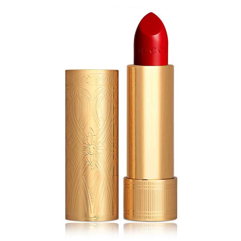 Rouge à Lèvres Satin is a creamy Gucci lipstick with intense colour that leaves lips smooth and soft. Highly pigmented and lightweight for a comfortable feel. Formula and application: Enriched with natural oils, the formula of this Gucci lipstick leaves the lips smooth and soft. It delivers a perfect long-lasting satin finish that leaves lips smooth and soft with a lightweight, comfortable feel. Design and range: The range spans from nudes to reds to pinks with nuances of orange and purple, plus an unexpected black hue so you’re sure to find your perfect shade. Inspired by vintage makeup, the lipstick’s packaging blends the House’s motifs with contemporary icons. Rouge à Lèvres Satin comes in a gold tube decoratively etched with a drawing inspired by Art Deco flair.