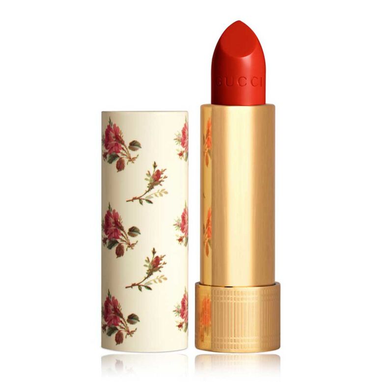 Kissing the lips with colour like a memory, the Gucci Rouge à Lèvres Voile lipstick’s sheer formula gives lips a luminous finish in a range of vibrant shades that deliver moisture and comfort in a lightweight texture. Formula and application: Enriched with oils and waxes for a creamy and soft formula, this Gucci lipstick glides on easily with an optimal release of pure colour, leaving lips moisturised. Design and range: This range of bright shades is inspired by iconic Hollywood films and characters from the Golden Age. The vintage-inspired makeup packaging blends the House’s motifs with contemporary icons. Rouge à Lèvres Voile lipstick makes a feminine statement with a pink rosebud print on ivory and a gold base, like something found on a 1940s dressing table.