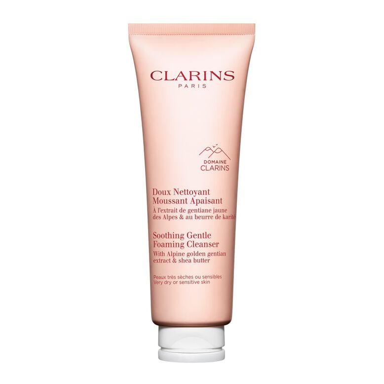 This foaming cleanser rich in Alpine herb extracts from the Domaine Clarins removes make-up, soothes dry skin and rids it of impurities while maintaining a balanced complexion.Rich in active ingredients chosen specifically to balance out very dry or sensitive skin: organic shea butter helps to moisturise the skin while organic chamomile extract helps to reduce feelings of discomfort. Its formula is also rich in the Clarins Gentle Complex with organic yellow gentian and lemon balm extracts to soothe and soften the skin.Finally, moringa extract prevents impurities from adhering to the skin. A creamy, comforting texture that transforms into a soft, lightweight foam. To minimise its environmental footprint, Clarins has redesigned this product in an even more eco-friendly tube with a lighter capsule.