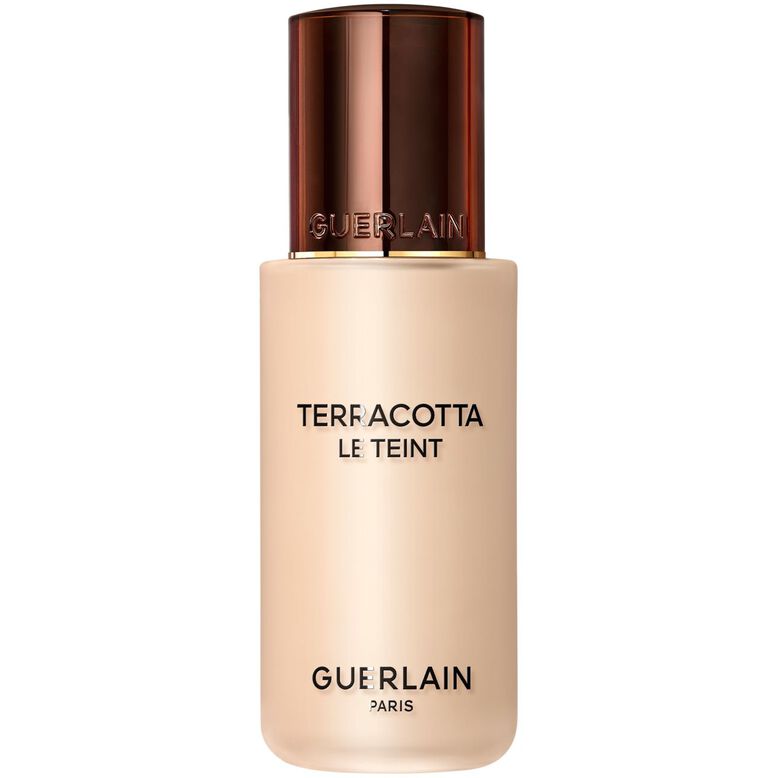 With Terracotta Le Teint, Guerlain is defining the contours of a new-generation complexion : a liquid foundation, formulated with 95% naturally-derived ingredients¹. It pairs the lightness and radiance of a powder with the perfection of a foundation. Its 24-hour wear² no-transfer formula guarantees a beautiful healthy glow, as if you were returning from an outdoor escape.This incredibly fine, ultra-light texture offers a barely-there feel. Its airy formula based on naturally-derived pigments and infused with natural argan oil fuses with the skin and is incredibly light to apply, delivering perfect tailor-made, ultra-buildable medium to high coverage.Wearing Terracotta Le Teint, skin is beautifully enhanced and glowing. Perfecting powders integrated into the formula instantly create a flawless yet unbelievably natural luminous matte finish. Light catchers ensure a fresh and luminous complexion the famous beautiful healthy glow, as if you had just returned from an outdoor escape.Terracotta Le Teint comes in a wide array of 30 shades: 16 intensities and three undertones (neutral, cool, warm), covering the entire complexion spectrum. Its exceptional formula contains self-adaptable shimmer Gemtone, which allows it to adjust to all skin tones.¹Based on ISO 16128 standard. The remaining 5% contribute to product integrity and sensoriality.²Instrumental test and clinical evaluation on 27 caucasian women.