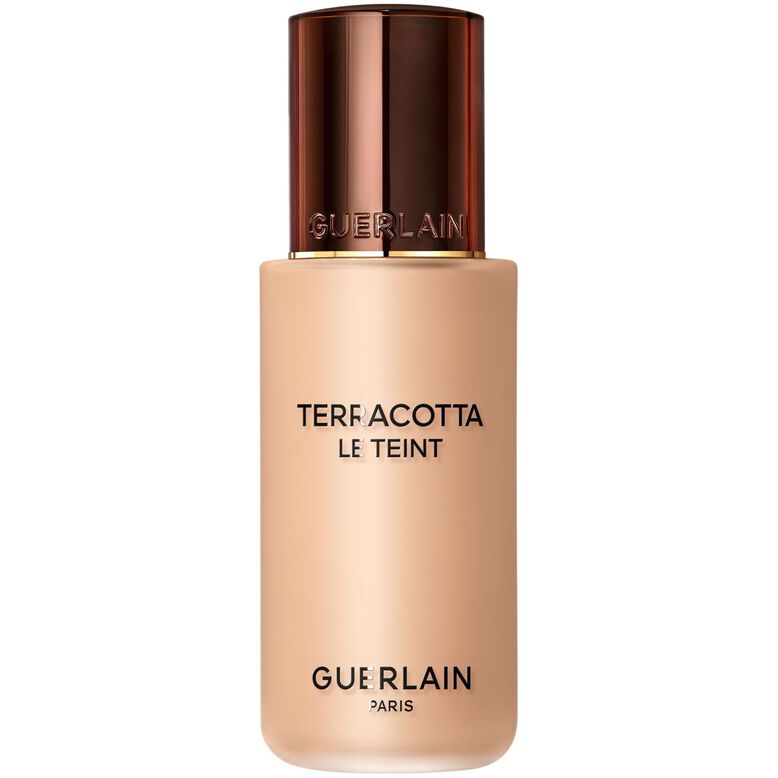 With Terracotta Le Teint, Guerlain is defining the contours of a new-generation complexion : a liquid foundation, formulated with 95% naturally-derived ingredients¹. It pairs the lightness and radiance of a powder with the perfection of a foundation. Its 24-hour wear² no-transfer formula guarantees a beautiful healthy glow, as if you were returning from an outdoor escape.This incredibly fine, ultra-light texture offers a barely-there feel. Its airy formula based on naturally-derived pigments and infused with natural argan oil fuses with the skin and is incredibly light to apply, delivering perfect tailor-made, ultra-buildable medium to high coverage.Wearing Terracotta Le Teint, skin is beautifully enhanced and glowing. Perfecting powders integrated into the formula instantly create a flawless yet unbelievably natural luminous matte finish. Light catchers ensure a fresh and luminous complexion the famous beautiful healthy glow, as if you had just returned from an outdoor escape.Terracotta Le Teint comes in a wide array of 30 shades: 16 intensities and three undertones (neutral, cool, warm), covering the entire complexion spectrum. Its exceptional formula contains self-adaptable shimmer Gemtone, which allows it to adjust to all skin tones.¹Based on ISO 16128 standard. The remaining 5% contribute to product integrity and sensoriality.²Instrumental test and clinical evaluation on 27 caucasian women.