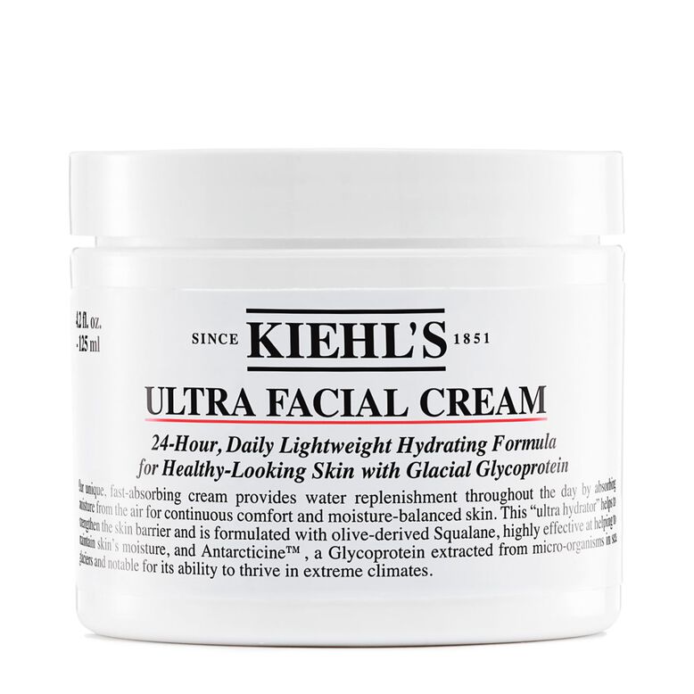 With 24-hour hydration, this moisturizer immediately leaves skin 2.3X more hydrated, even in skin’s driest areas. Formulated with Glacial Glycoprotein, derived from sea glaciers, and olive-derived Squalane, this beloved moisturizer helps strengthen skin’s barrier and leaves skin feeling comfortable and well-balanced. With an ultra-lightweight texture, this facial cream absorbs easily for softer, smoother, healthier-looking skin. Gentle and effective, Ultra Facial Cream is Kiehl’s #1 worldwide customer favorite.
